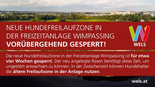Die neue Hundefreilaufzone in der FZA Wimpassing ist für etwa vier Wochen gesperrt. Der neu angelegte Rasen benötigt diese Zeit zum Anwachsen.