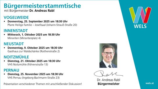 Bürgermeister Dr. Andreas Rabl lädt wieder zu seinen Stammtischen in die Stadtteile.