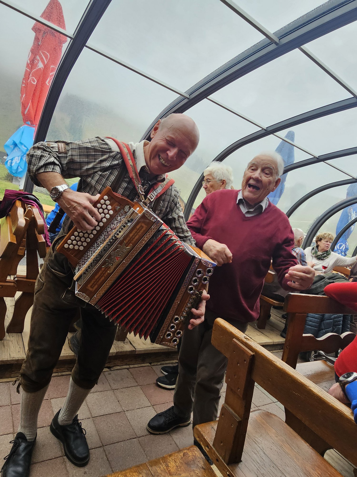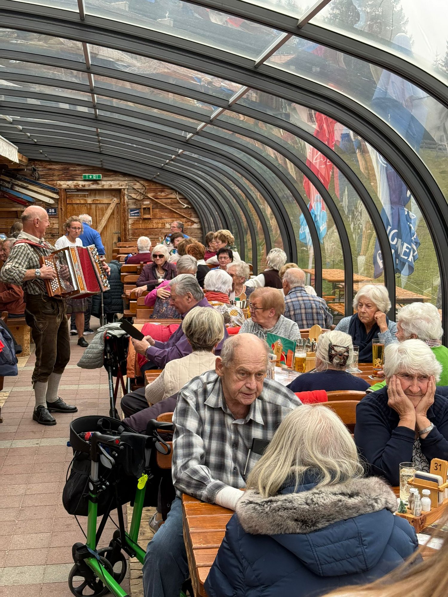 Rund 60 Besucher der Generationentreffs der stĂ€dtischen Seniorenbetreuung unternahmen kĂŒrzlich einen gemeinsamen Ausflug nach Hinterstoder auf die Hutterer Böden (1.400 Meter). Neben geselligem Beisammensein nutzten viele die Gelegenheit zu einer kleinen Wanderung. Sogar die ersten Schneeflocken begleiteten den gelungenen Tag in den Bergen und sorgten fĂŒr begeisterte Gesichter. FĂŒr die passende musikalische Unterhaltung bei der Einkehr auf der LögerhĂŒtte sorgten der âKoppenfriedlâ mit seiner Steirischen Harmonika sowie Wirt Rainer Ramsebner persönlich mit der Teufelsgeige. NĂ€here Infos zu den einzelnen Treffs sind unter wels.at/generationentreffs ersichtlich.
