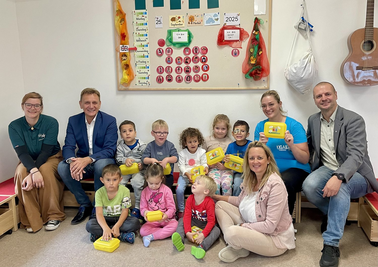 Umweltfreundliche Mehrweg-Jausenboxen erhalten traditionell die insgesamt rund 550 AnfĂ€nger in den 14 stĂ€dtischen KindergĂ€rten. Um diese Aktion von stĂ€dtischer Abfallwirtschaft und Bezirksabfallverband zu unterstĂŒtzen, besuchen Bildungsreferent VizebĂŒrgermeister Mag. Klaus Schinninger und Stadtrat Thomas Rammerstorfer (Abfallwirtschaft) jĂ€hrlich eine Kinderbildungs- und -betreuungseinrichtung: Heuer war der von Petra Weidinger geleitete Kindergarten LessingstraĂe an der Reihe.