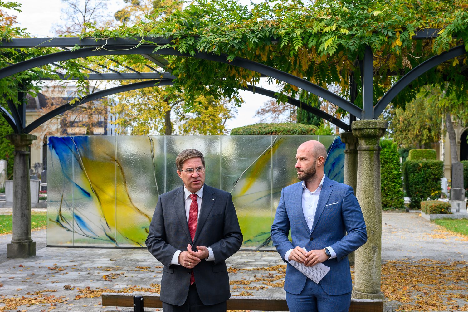 BĂŒrgermeister Dr. Andreas Rabl: âUnser Stadtfriedhof ist ein Ort des Abschieds von den Verstorbenen und des pietĂ€tvollen Gedenkens an unsere Liebsten. Gleichzeitig erfĂŒllt er als gröĂte öffentliche GrĂŒnflĂ€che eine mehr denn je wichtige Funktion, um das urbane Klima stabil zu halten. Beides erfordert laufende Investitionen, die im Masterplan Friedhof sukzessive umgesetzt werden.â