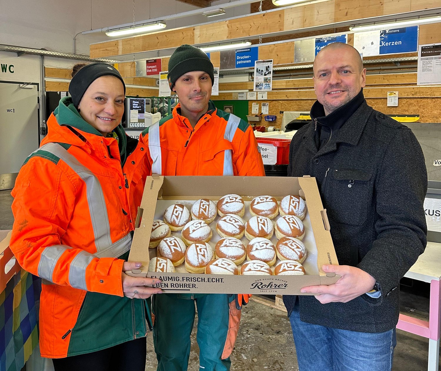 Auch heuer verteilte Stadtrat Thomas Rammerstorfer (Abfallwirtschaft) wieder Faschingskrapfen im Altstoffsammelzentrum Wels-Nord (ASZ) als Belohnung fĂŒr das richtige Abfalltrennen. Er freut sich ĂŒber die positiven RĂŒckmeldungen ĂŒber die kleine Aufmerksamkeit, aber vor allem ĂŒber die Freundlichkeit und Kompetenz der BeschĂ€ftigten. Das ASZ mit den landesweit lĂ€ngsten Ăffnungszeiten und gröĂten Sammelmengen stöĂt freilich an gewissen Tagen an die Grenzen der AufnahmefĂ€higkeit, Ende des Jahres kommt aber Entlastung mit dem neuen ASZ in Wels-West. Dieses erste vollautomatische Altstoffsammelzentrum in Oberösterreich wird ohne Personal auskommen, in Wels-Nord wird es weiterhin den gewohnten Service geben (Infos unter www.umweltprofis.at/wels/home.html im Internet). Ăbrigens: Derzeit umgebaut werden die GrĂŒnschnittsammelstellen MitterhoferstraĂe und Mauth â bitte die BeschrĂ€nkungen beziehungsweise Absperrungen beachten. Es kann wĂ€hrend der Umbauphase jederzeit auf alle weiteren GrĂŒnschnittsammelstellen ausgewichen werden!