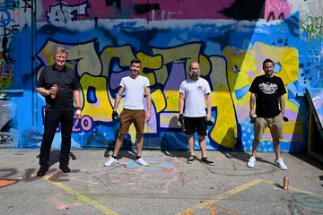 Kulturstadtrat Johann Reindl-Schwaighofer und Tobias Tomasek (1. und 2. v.l.) freuen sich mit den Mitwirkenden bereits auf das von Samstag, 1. bis Sonntag, 2. August stattfindende "Street Art Festival".