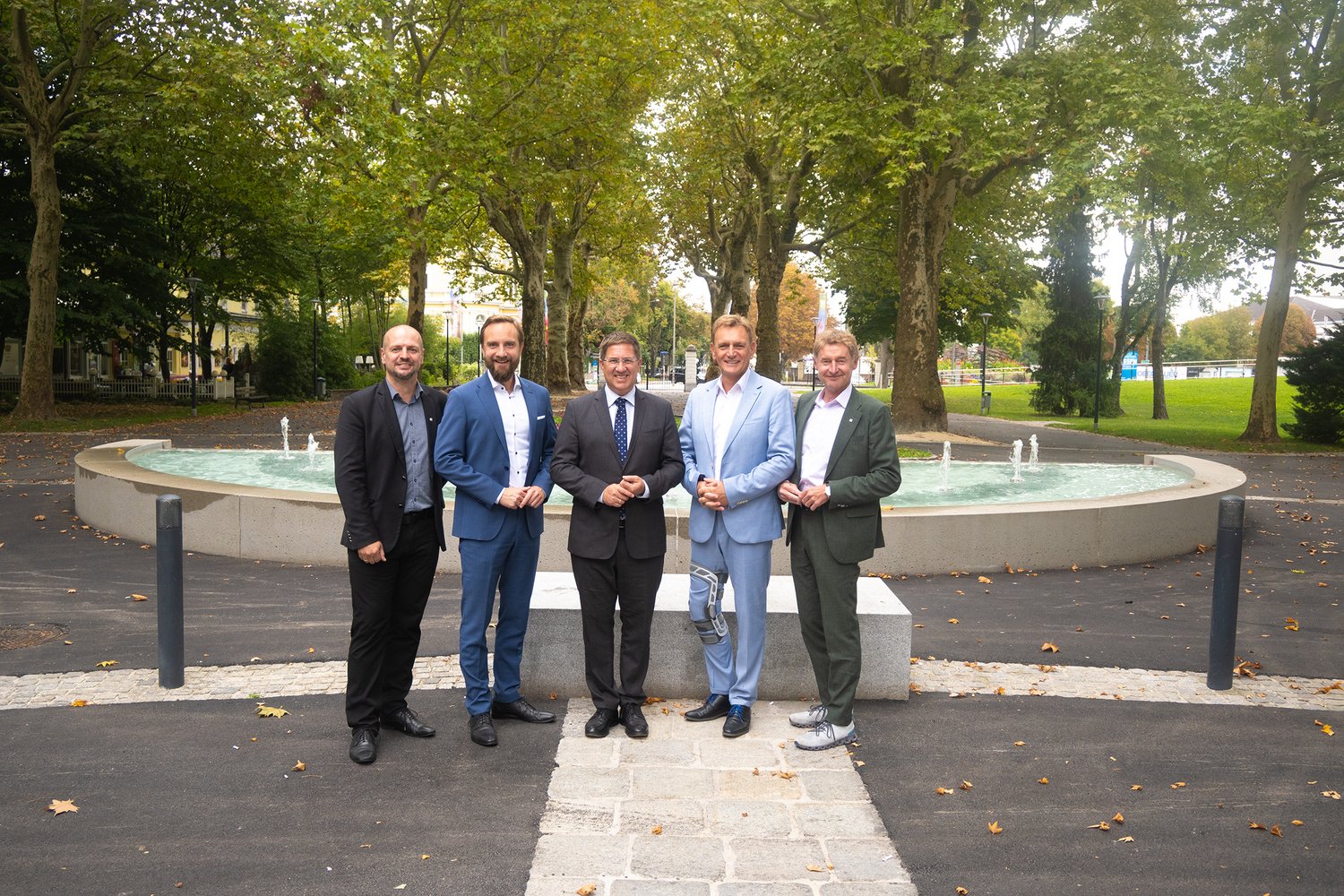 Die StadtrĂ€te Thomas Rammerstorfer und Dr. Martin Oberndorfer, BĂŒrgermeister Dr. Andreas Rabl sowie die VizebĂŒrgermeister Mag. Klaus Schinninger und Gerhard KroiĂ.