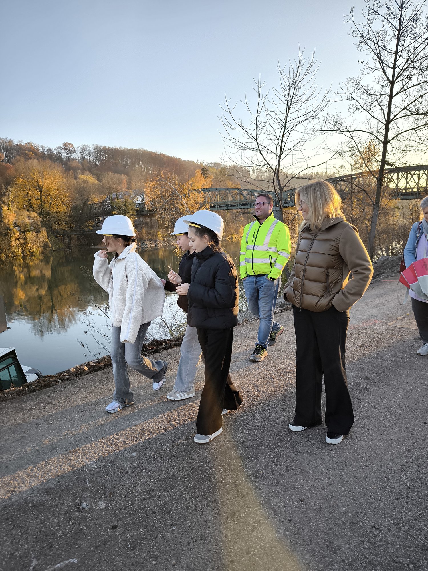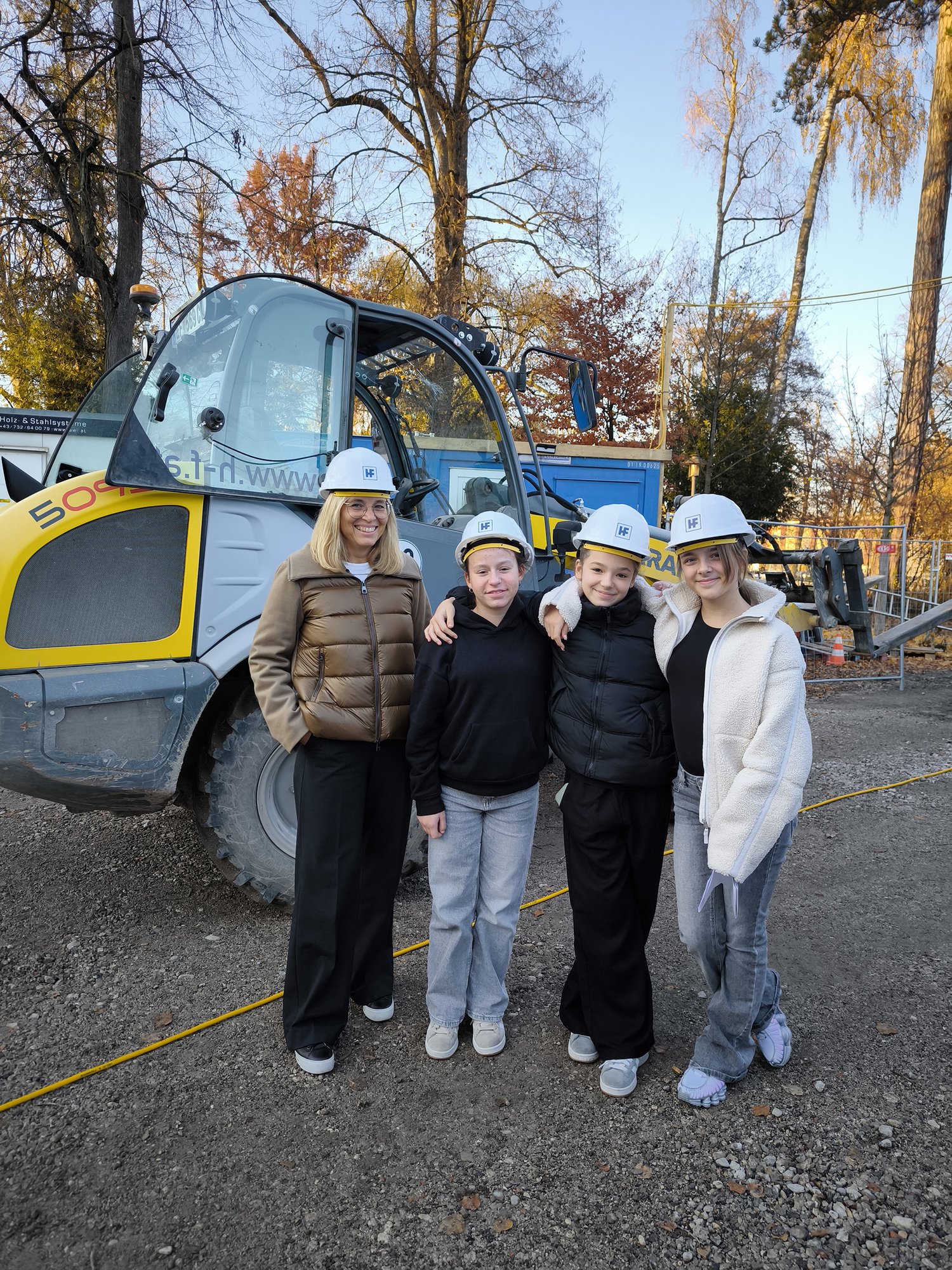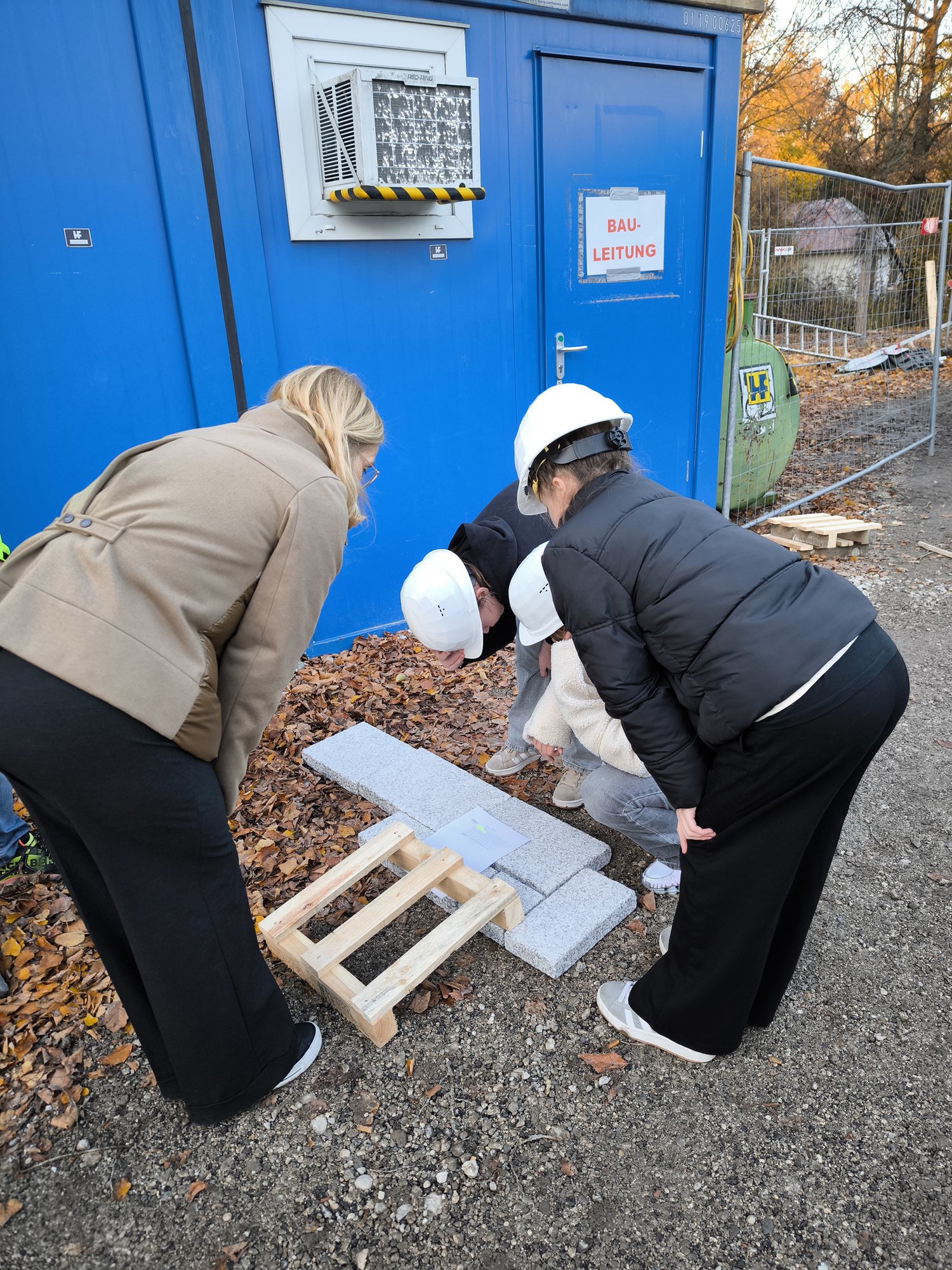 Ein besonderes Highlight bildete der Besuch des Projektes âVolksgarten Neuâ. Nach einer kurzen Planbesprechung im Baucontainer konnten sich die Teilnehmerinnen bei einem Rundgang ĂŒber die geplanten Entwicklungen und MaĂnahmen informieren. AuĂerdem begutachteten die MĂ€dchen gemeinsam Muster der neuen Pflasterung und entschieden anschlieĂend gemeinsam, welches davon verlegt wird. Damit haben sich die jungen Damen im neuen Volksgarten quasi verewigt.