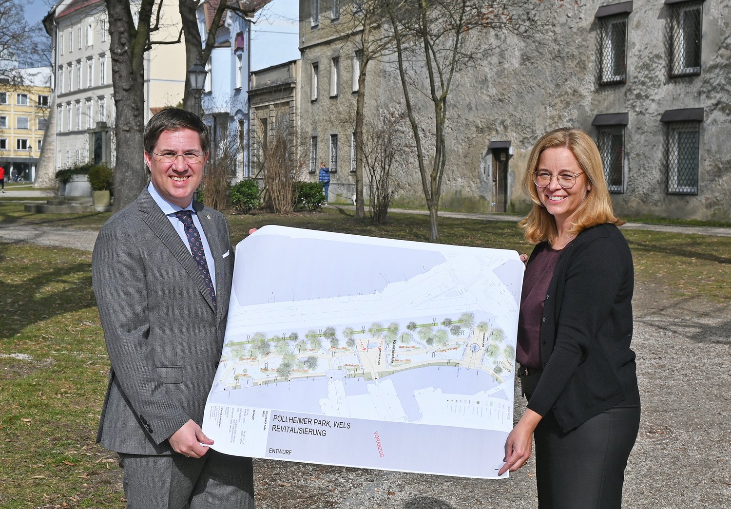 Innenstadtreferentin VizebĂŒrgermeisterin Christa Raggl-MĂŒhlberger: âParkanlagen bestimmen in wesentlicher Form die LebensqualitĂ€t einer Stadt. Mit der Neugestaltung des Pollheimerparks setzen wir einen weiteren wichtigen Schritt, die GrĂŒnflĂ€chen der Innenstadt zu attraktivieren, zu verbessern und die AufenthaltsqualitĂ€t zu steigern.â