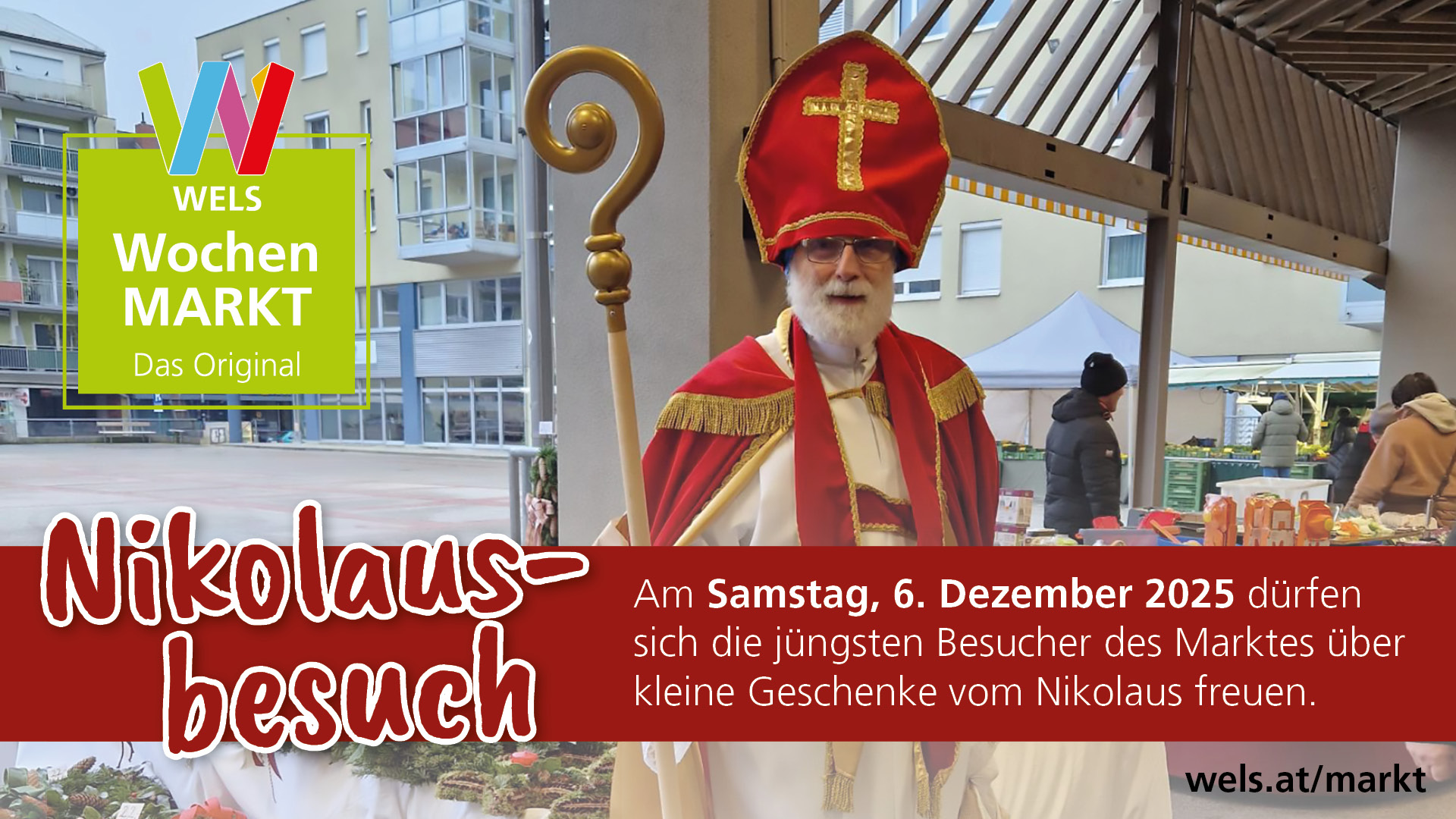 Am Nikolaustag wartet wieder der BĂ€uerliche Kekserlmarkt auf die Besucher und auch der Nikolaus besucht den Welser Wochenmarkt.